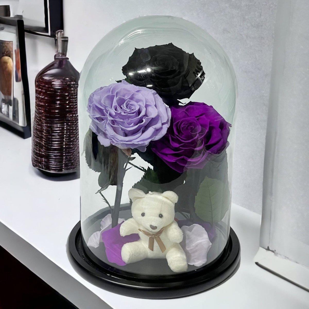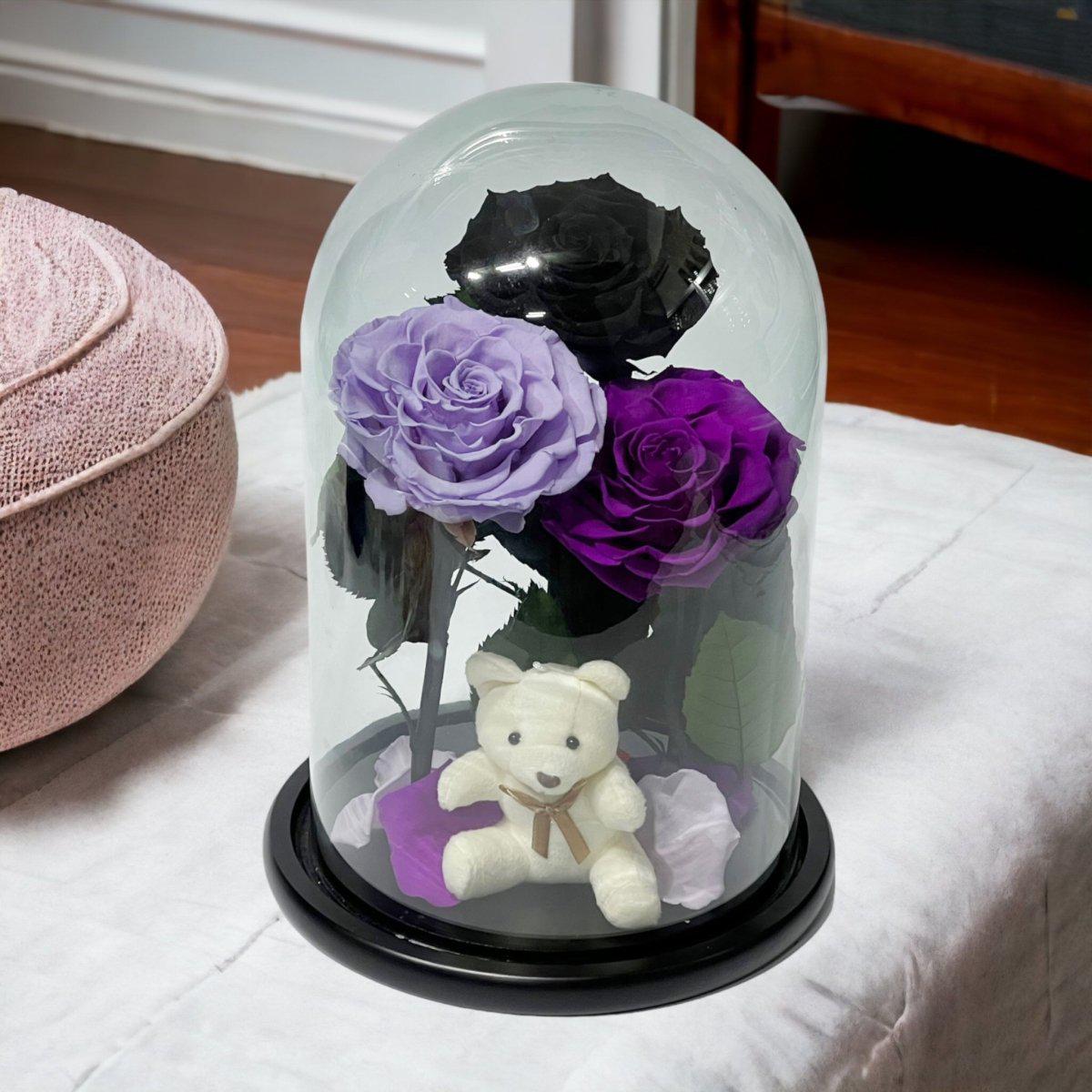 Foarte frumos trandafirul. Este un cadou dragut. (Personal m-am intrebat daca ar putea fi fixata cupola de sticla permanent de baza pentru a putea fii manevrata mai usor dar este frumos si asa)