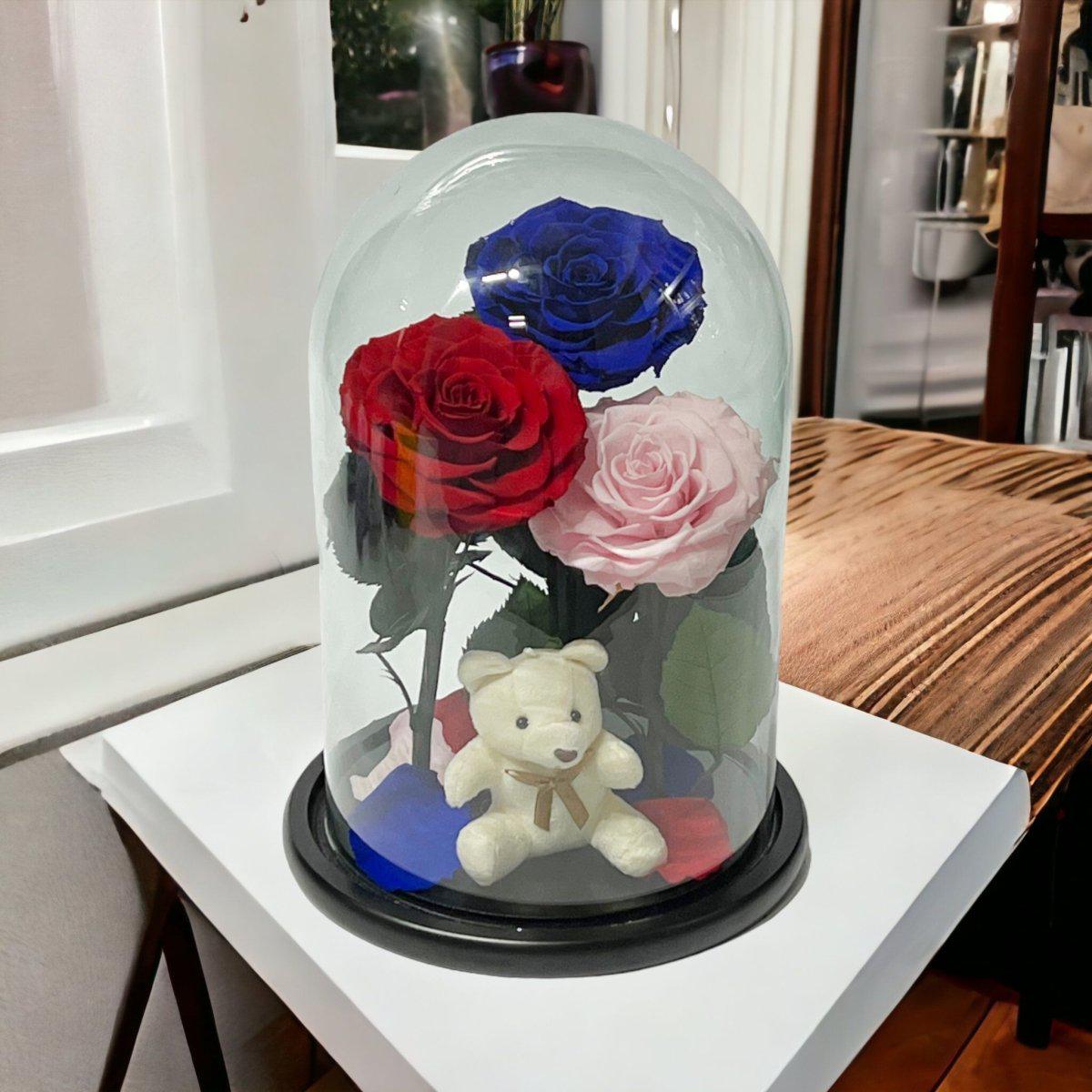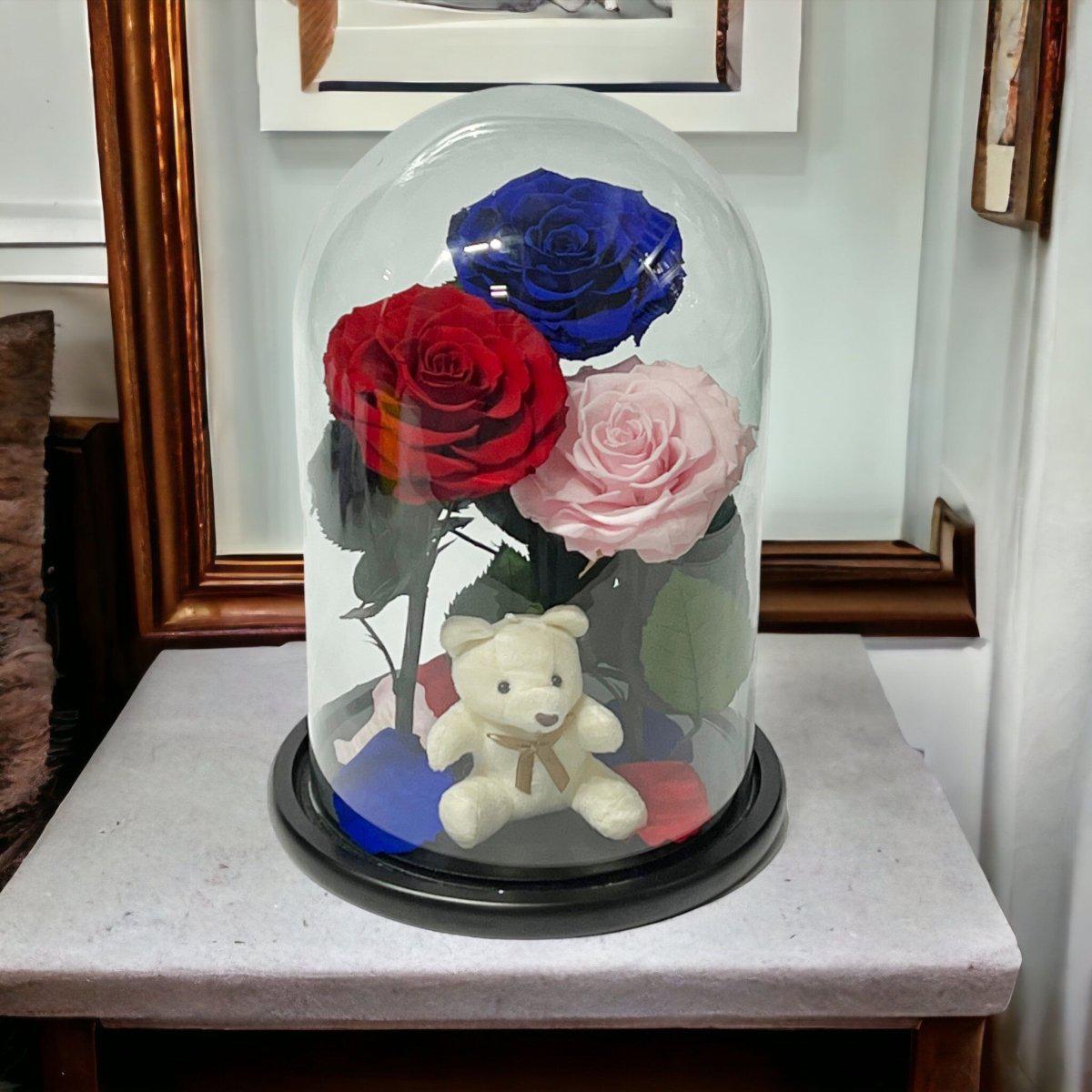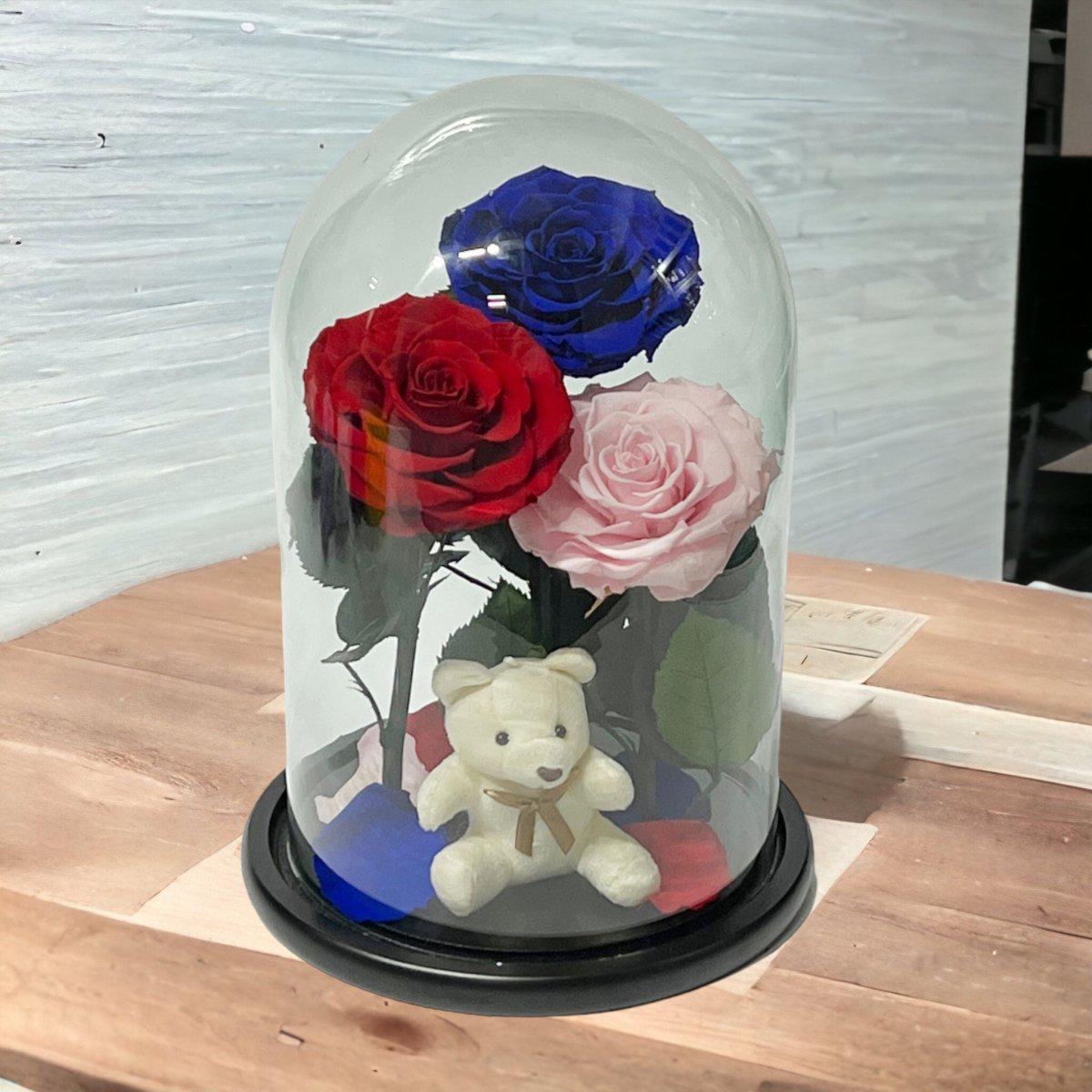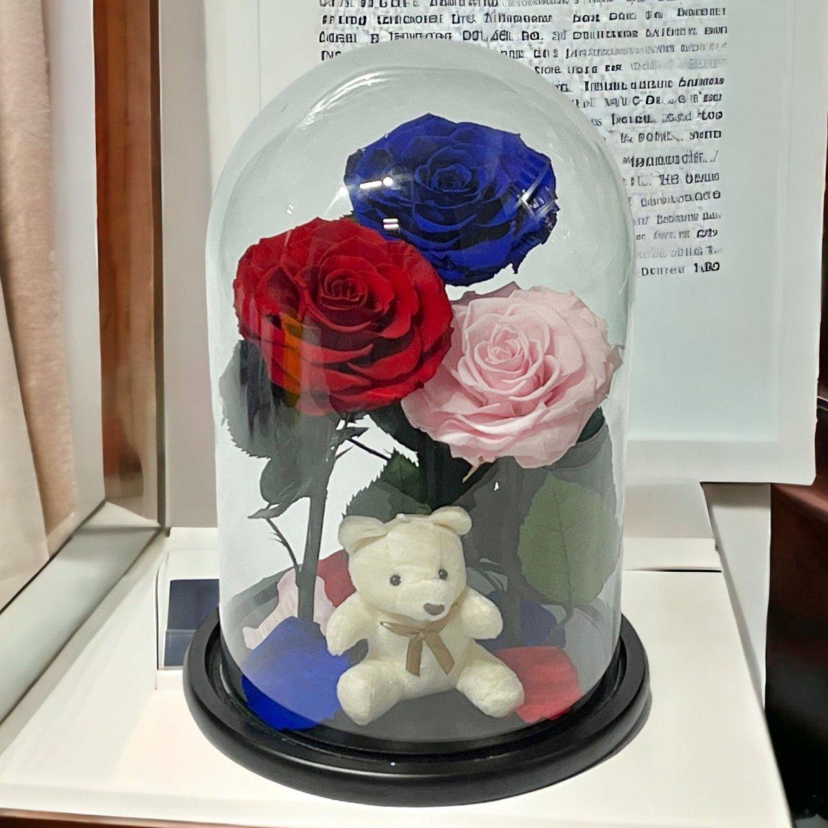 Foarte frumos trandafirul. Este un cadou dragut. (Personal m-am intrebat daca ar putea fi fixata cupola de sticla permanent de baza pentru a putea fii manevrata mai usor dar este frumos si asa)