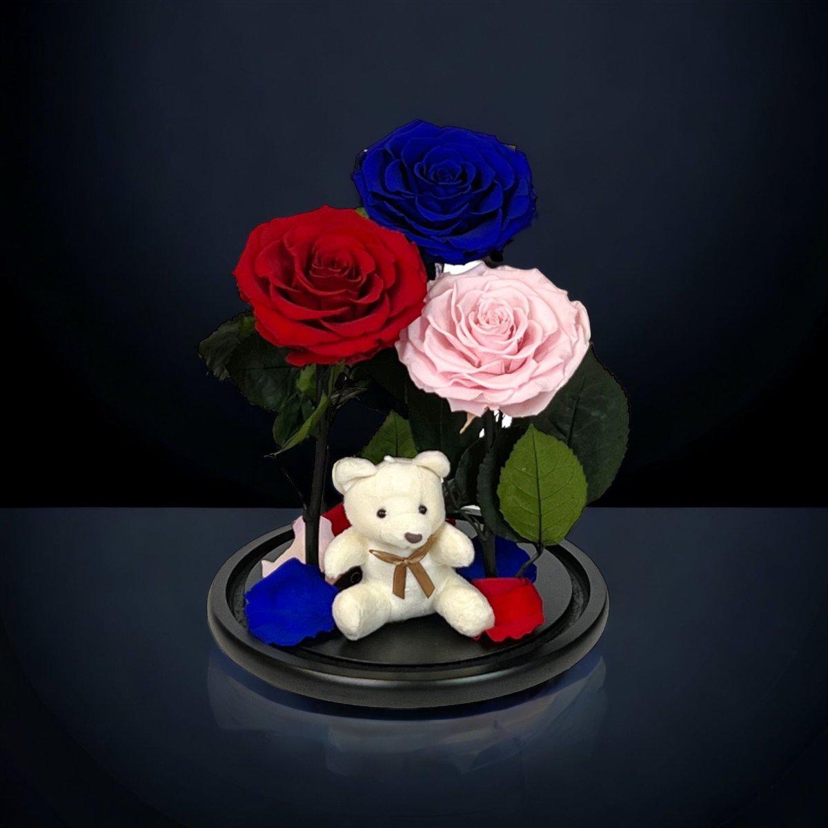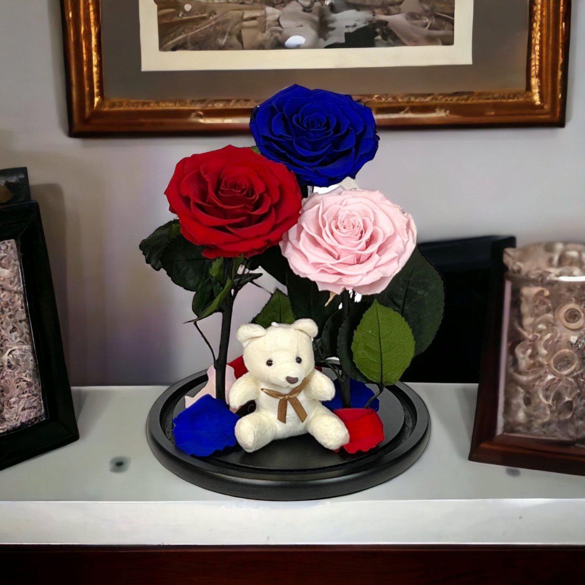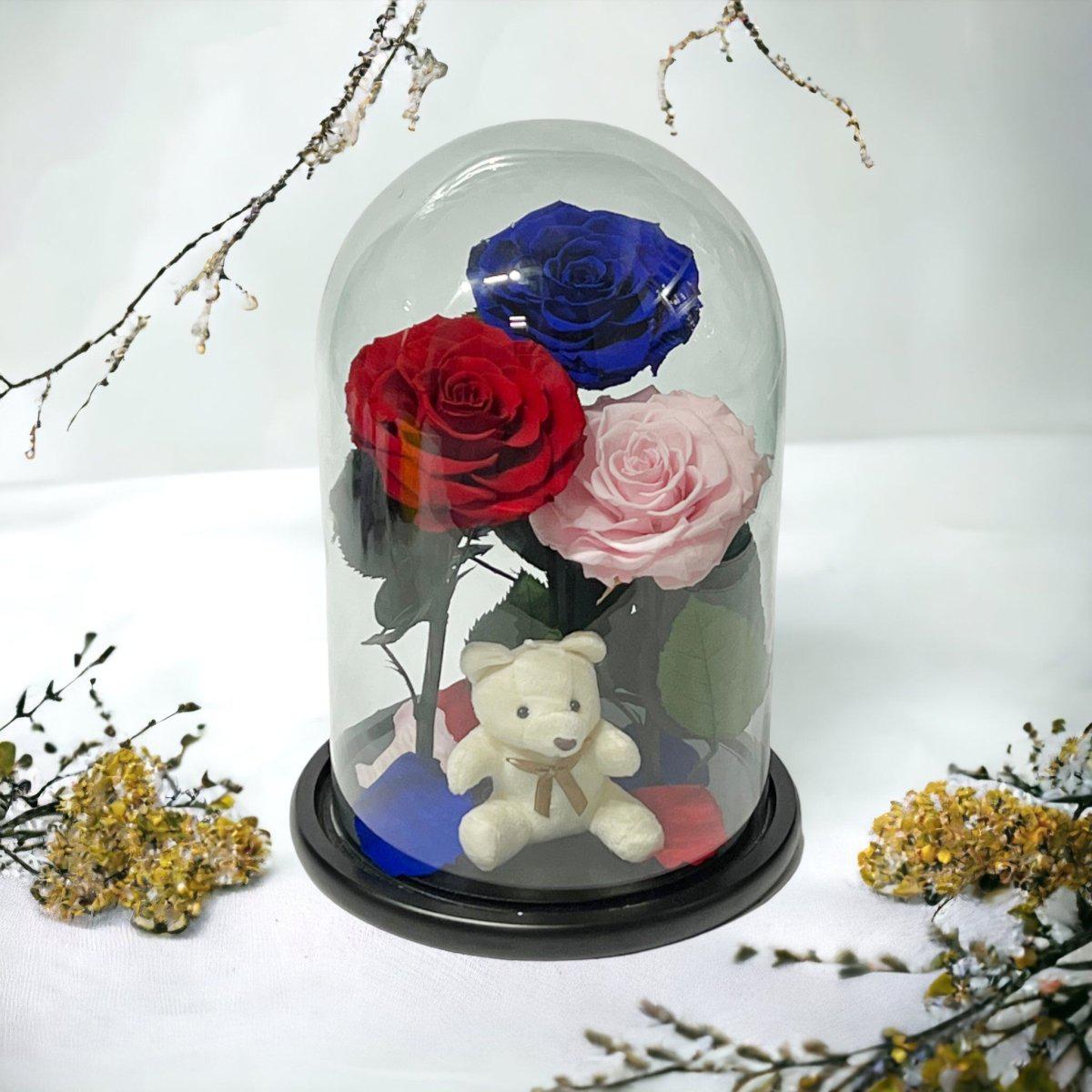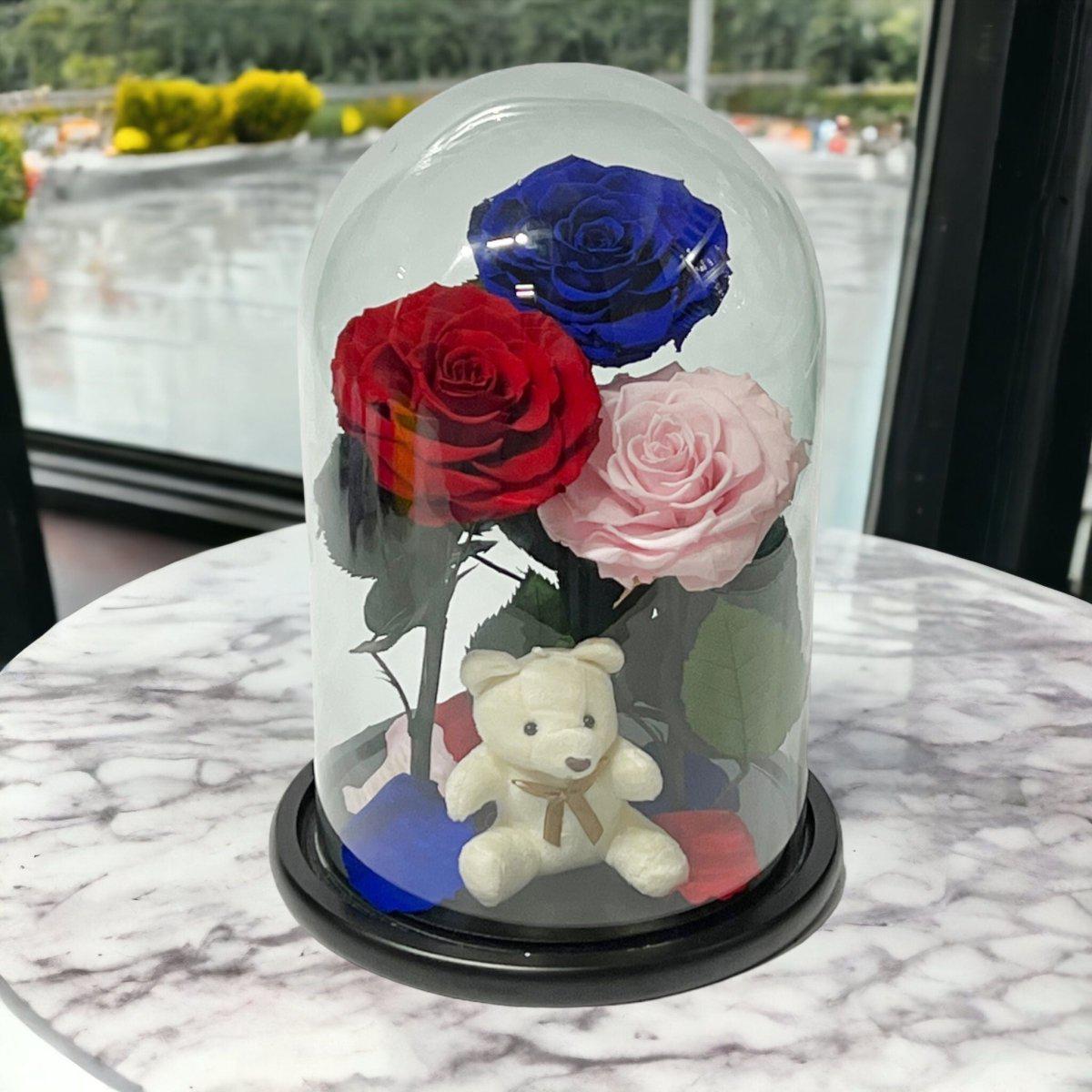 Foarte frumos trandafirul. Este un cadou dragut. (Personal m-am intrebat daca ar putea fi fixata cupola de sticla permanent de baza pentru a putea fii manevrata mai usor dar este frumos si asa)