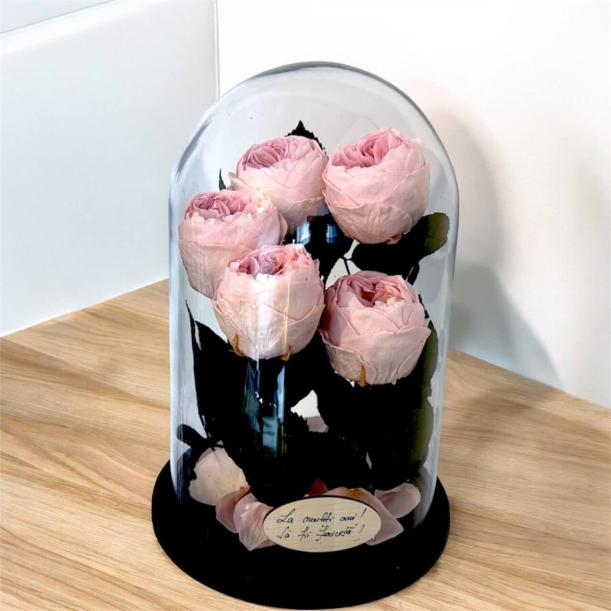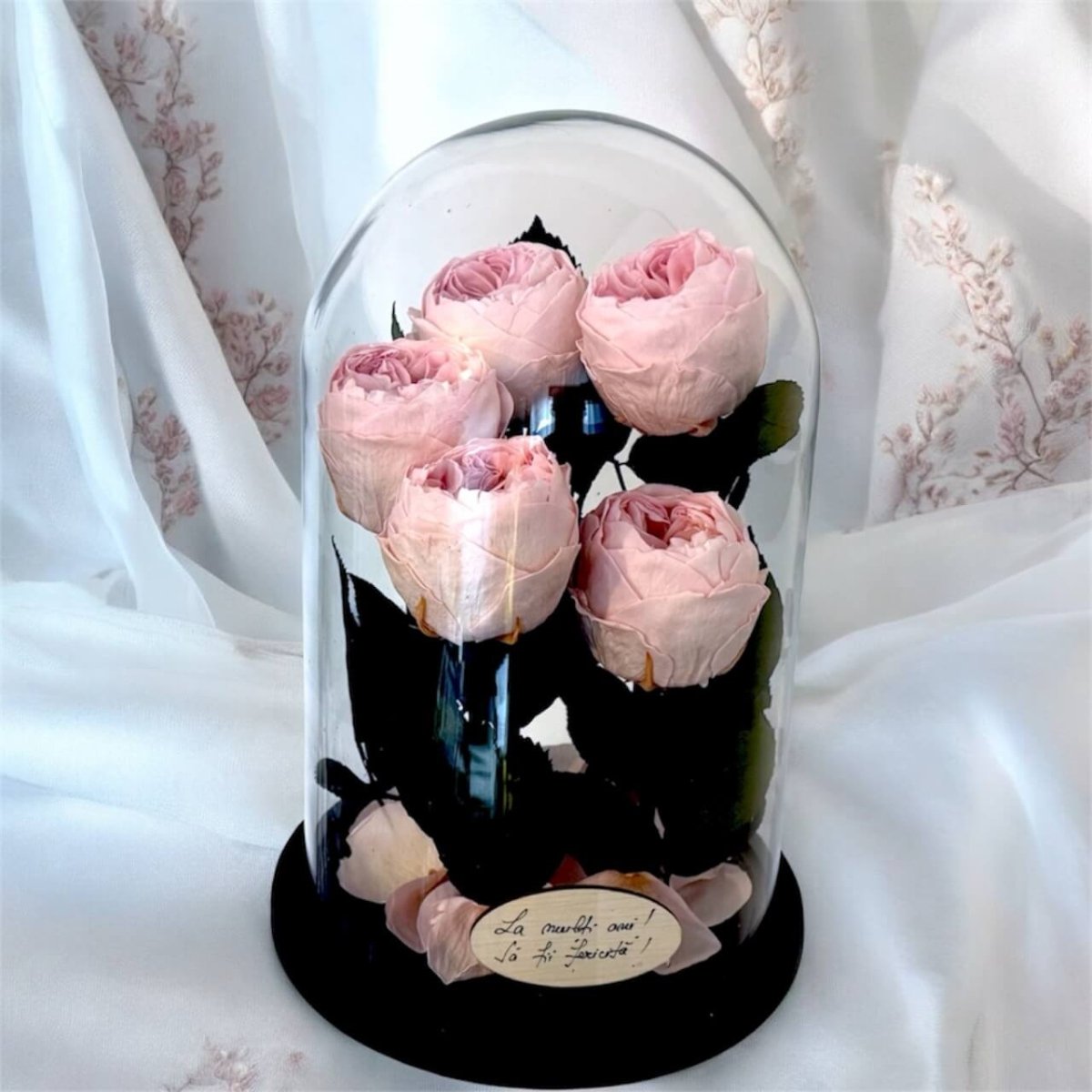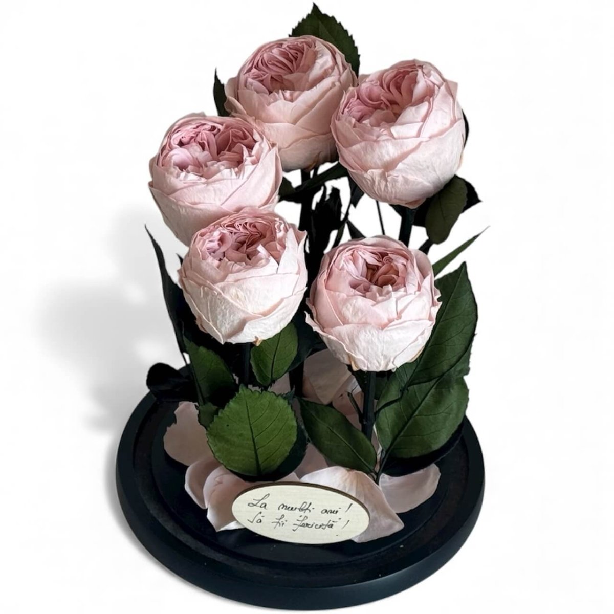 Foarte frumos trandafirul. Este un cadou dragut. (Personal m-am intrebat daca ar putea fi fixata cupola de sticla permanent de baza pentru a putea fii manevrata mai usor dar este frumos si asa)