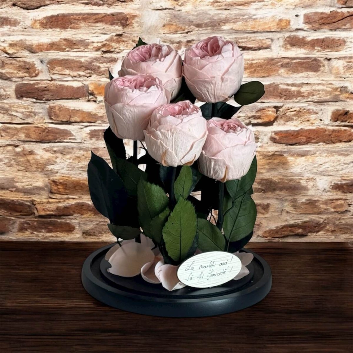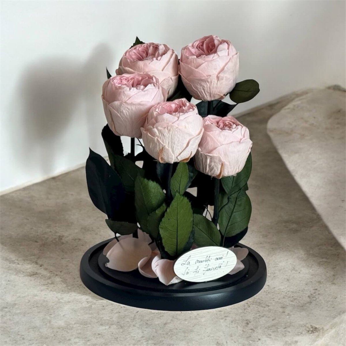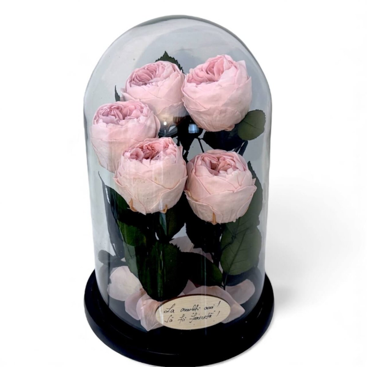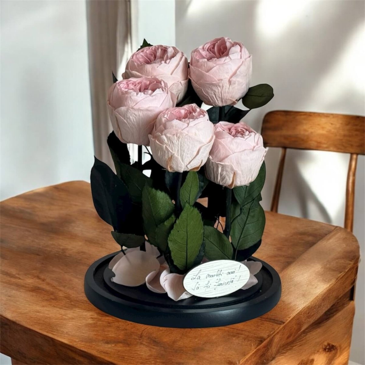 Foarte frumos trandafirul. Este un cadou dragut. (Personal m-am intrebat daca ar putea fi fixata cupola de sticla permanent de baza pentru a putea fii manevrata mai usor dar este frumos si asa)