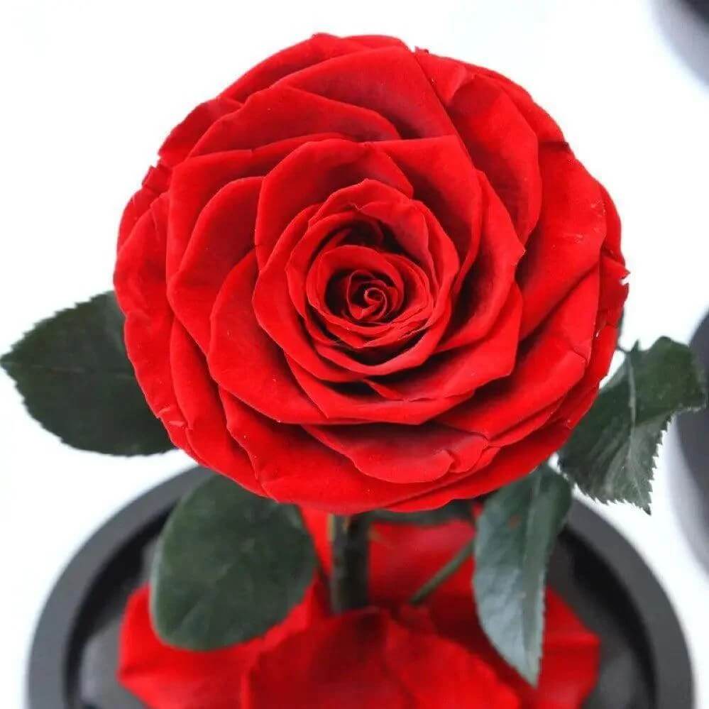 Trandafirul criogenat este 100% natural și supus unei tehnologii avansate de criogenare, astfel încât frumusețea sa să reziste până la 25 de ani, fără să își piardă culoarea sau strălucirea. Cupola de sticlă protejează florile de praf și de lumina soarelui, menținând aspectul proaspăt ca în prima zi.