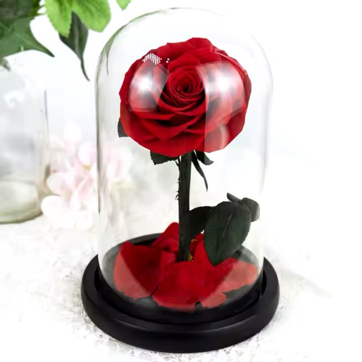 Descoperă Trandafirul Criogenat Bella Roșu în Cupolă de Sticlă cu Mesaj Emoționant Personalizat — o piesă deosebită ce îmbină eleganța cu originalitatea, perfectă pentru a surprinde persoana dragă și a păstra clipele speciale pentru totdeauna.