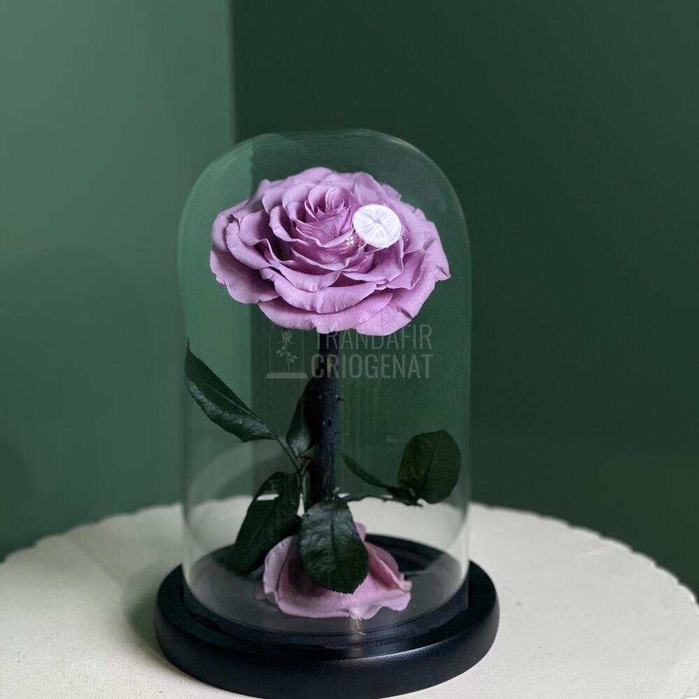 Trandafir Criogenat Bonita Lila În Cupolă De Sticlă Cu Mesaj Personalizat Cadou Pentru Femei