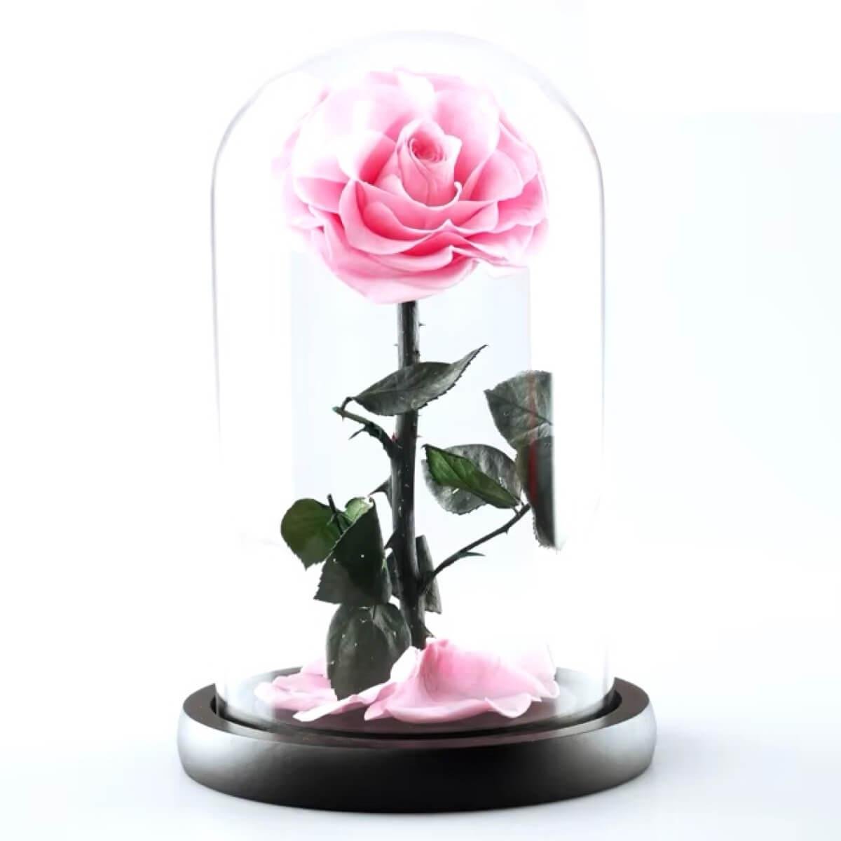 Trandafir Criogenat Bonita Roz În Cupolă De Sticlă Cadou Personalizat Cu Mesaj
