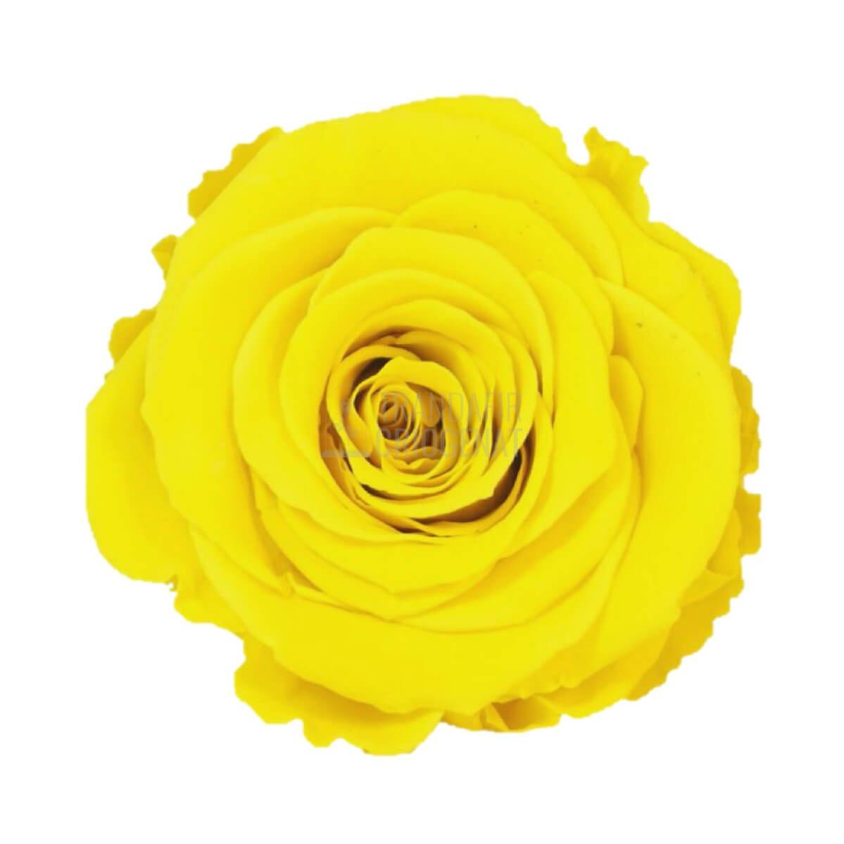 • Trandafir criogenat de culoare galbenă, cu diametrul de 6–6,5 cm, ales pentru nuanța sa luminoasă ce simbolizează bucuria și optimismul.