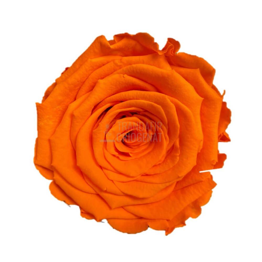 • Culoare și dimensiuni: trandafir criogenat portocaliu, diametru 6–6,5 cm; cupolă cu dimensiuni 10 x 20 cm.