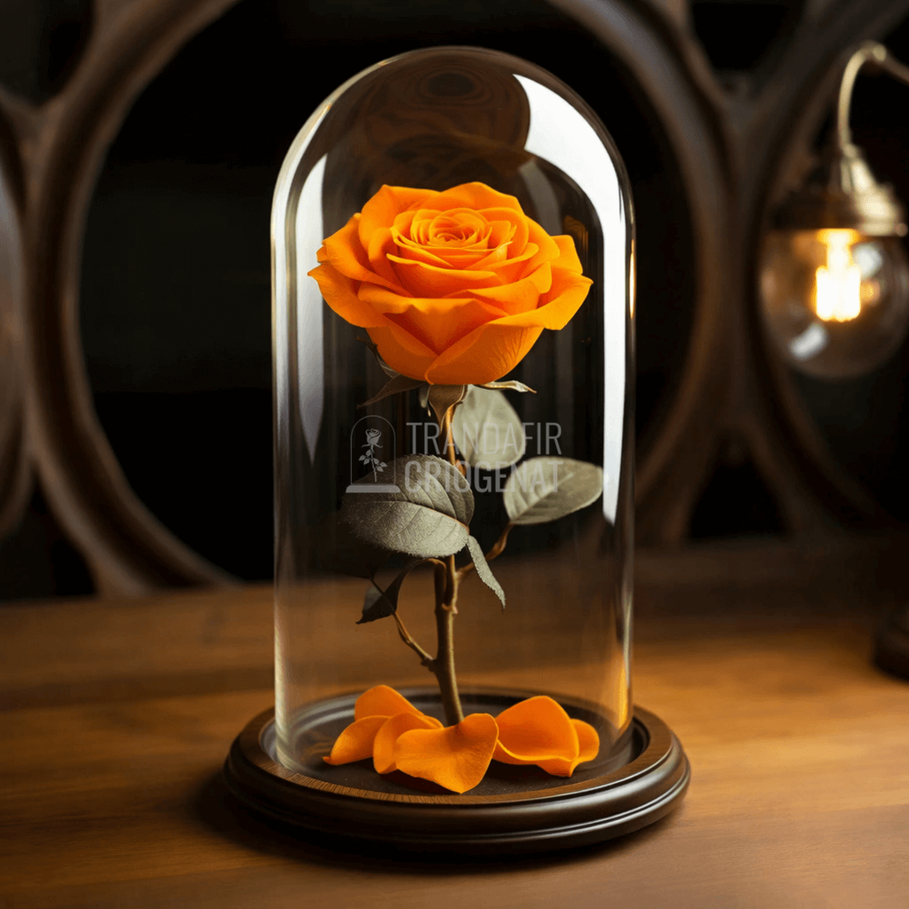 Trandafir Criogenat Portocaliu În Cupolă De Sticlă Cu Mesaj Personalizat Cadou Special Pentru Femei