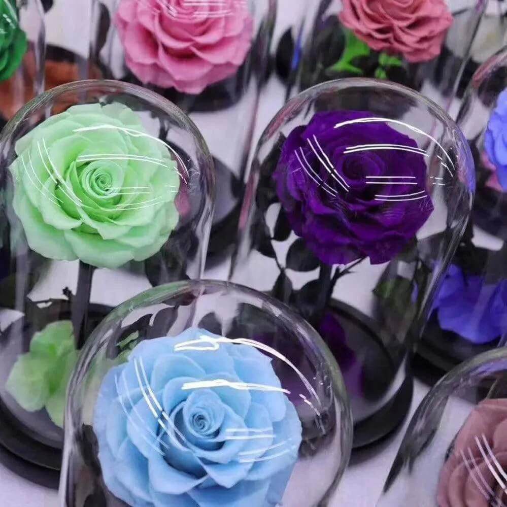 În plus față de frumusețea sa, criogenarea asigură că trandafirul nu își pierde culoarea sau forma, oferind un decor durabil pentru casa sau biroul tău. Cupola de sticlă împreună cu suportul de lemn creează un aranjament sofisticat, perfect pentru vitrine sau birouri.