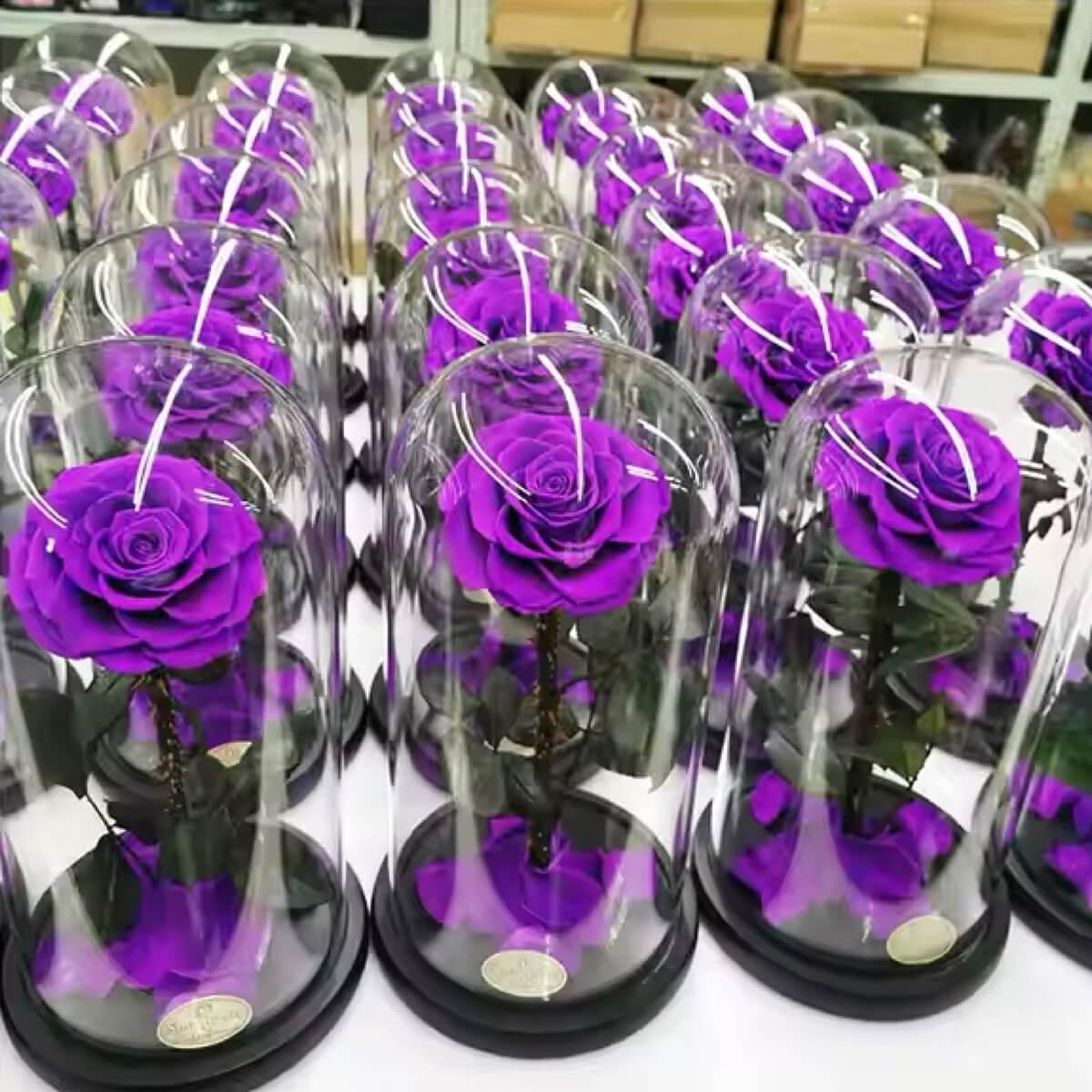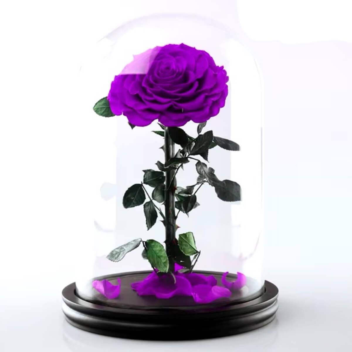 Trandafir Criogenat Mov Bonita In Cupolă De Sticlă 9,5cm Cadou Unic Pentru Ea Deosebit