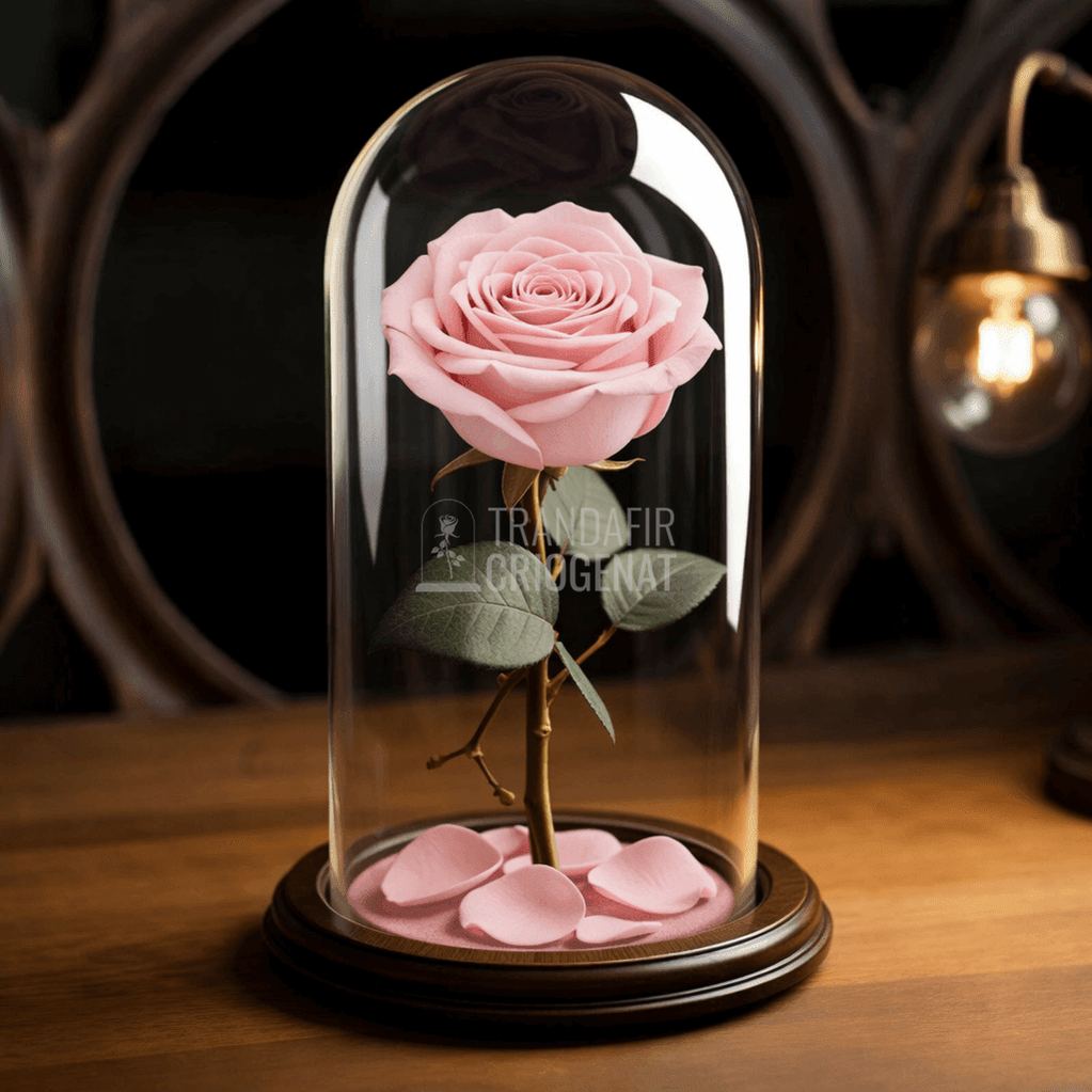 Trandafir Criogenat Roz Pal În Cupolă De Sticlă Cu Mesaj Personalizat Cadou Pentru Femei