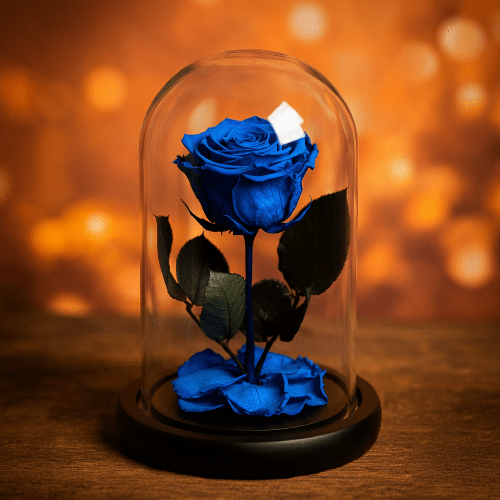 Trandafir Criogenat Albastru Elegant În Cupolă De Sticlă Cadou Perfect
