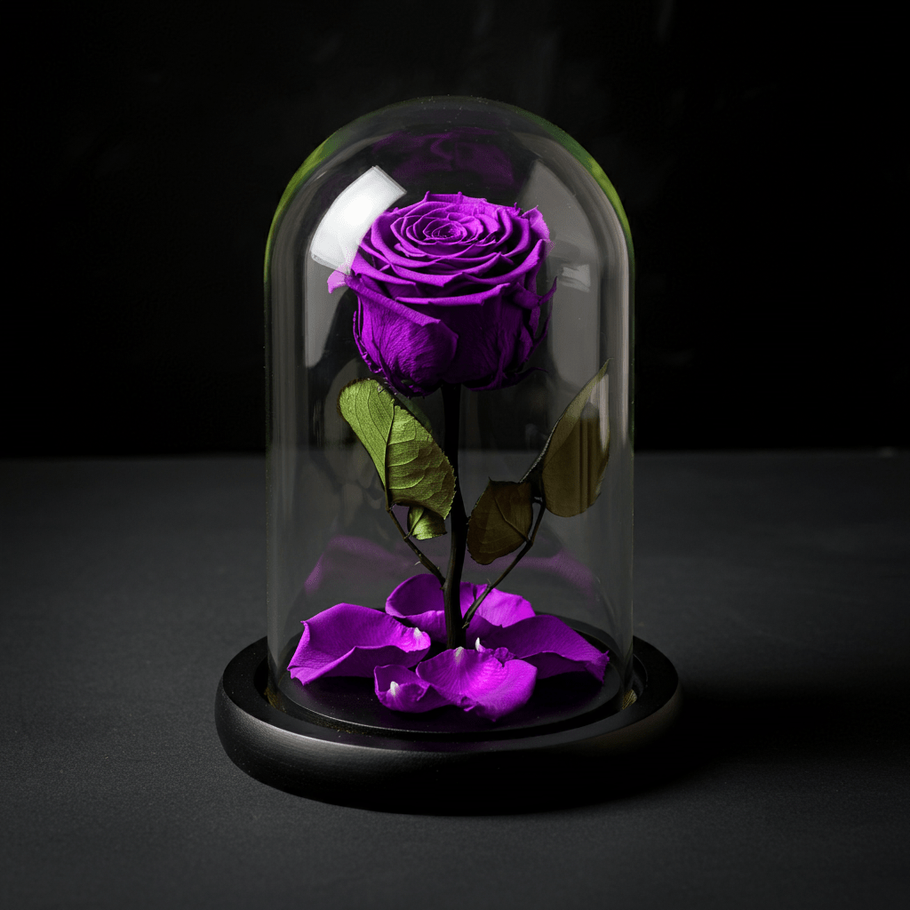 Trandafir Criogenat XL Purpuriu Deschis Sub Cupolă Elegantă de Sticlă 10x20cm