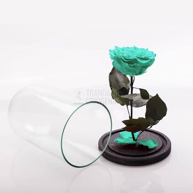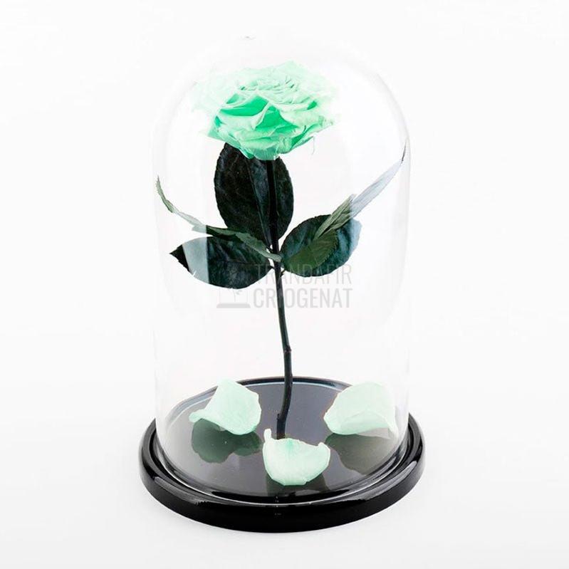 Trandafir Criogenat XL Verde Mentă În Cupolă De Sticlă Personalizat Cu Mesaj Cadou Elegant Durabil