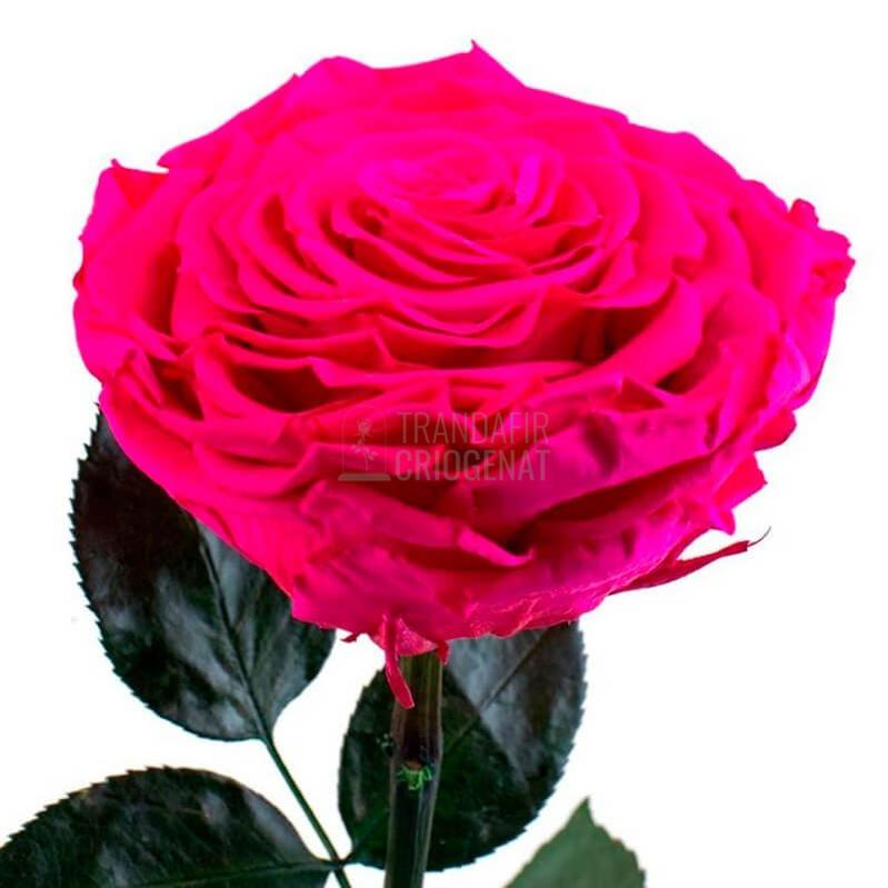 • Trandafir criogenat XXL, culoare roz ciclam, cu diametrul de 9–9,5 cm.
