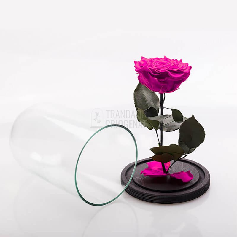 Trandafir Criogenat XXL Roz Ciclam In Cupola De Sticla Cu Mesaj Personalizat Cadou Pentru Femei