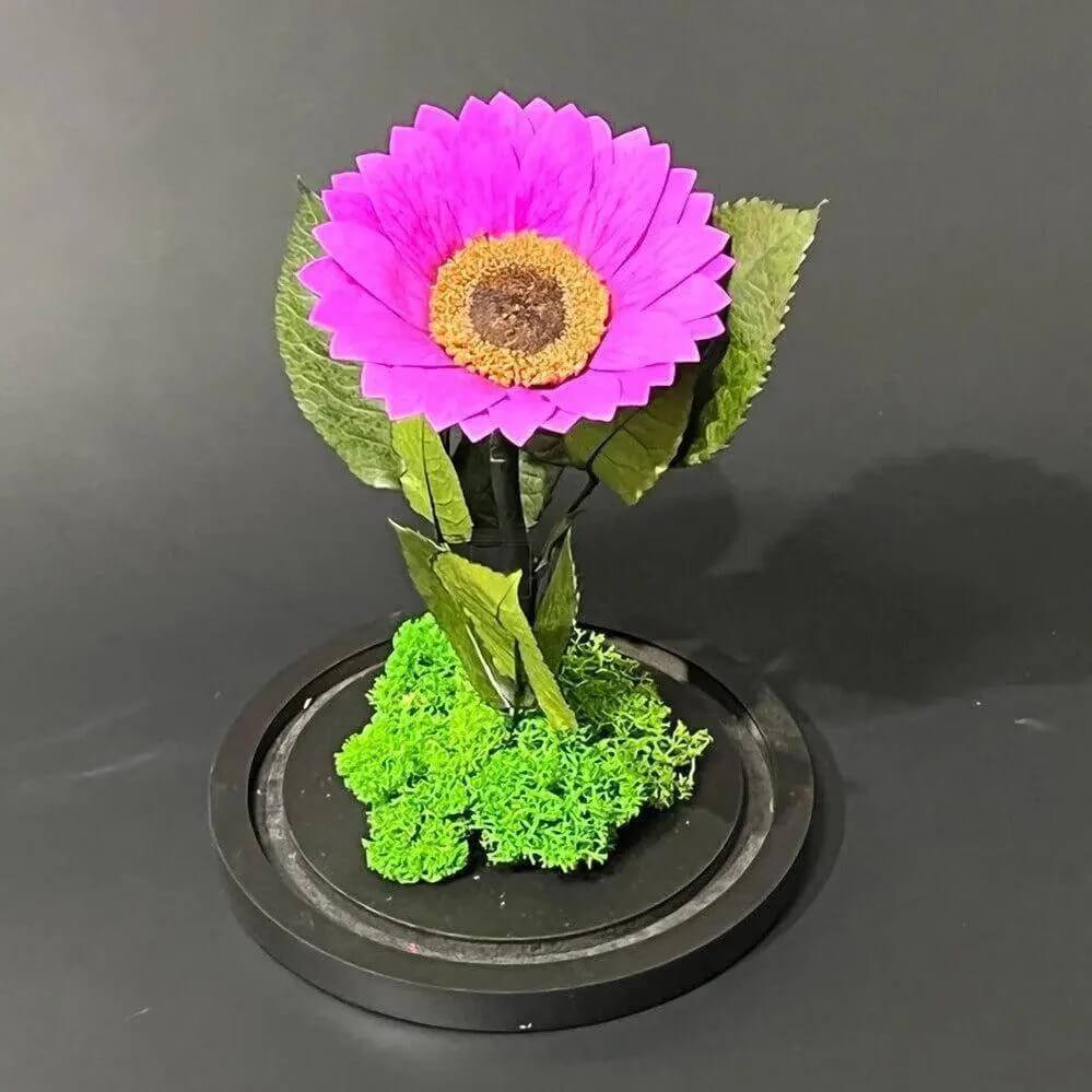 Cadoul Perfect pentru Femei! Dacă vrei să oferi ceva cu adevărat memorabil, floarea soarelui criogenată mov în cupolă de sticlă este alegerea ideală. Această floare superbă nu doar că aduce un strop de culoare, dar și bucurie în viața oricărei femei.