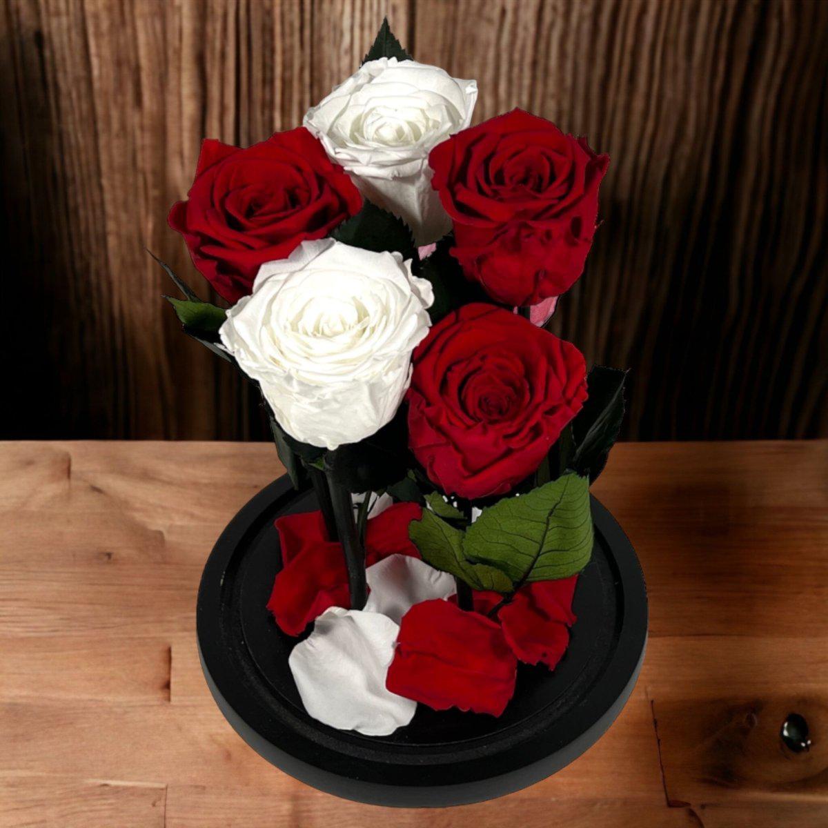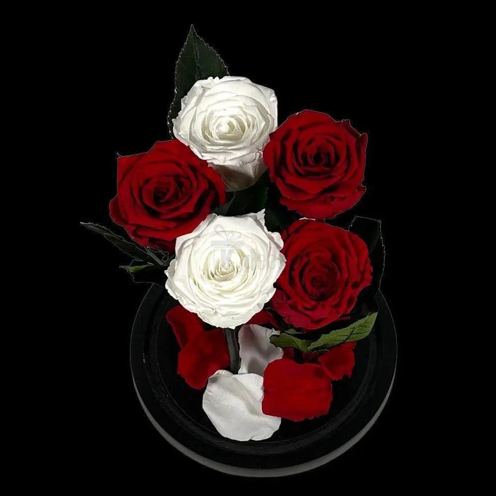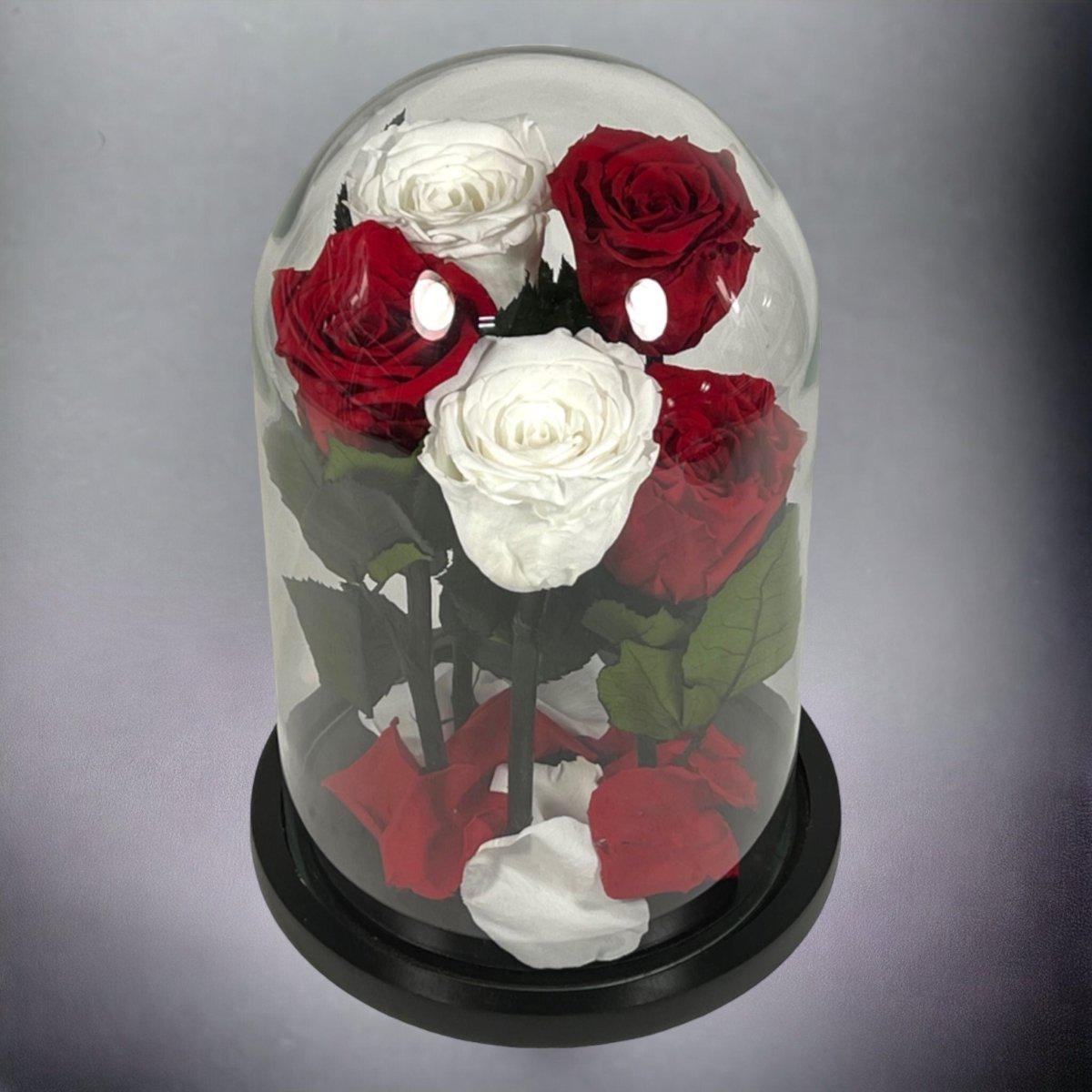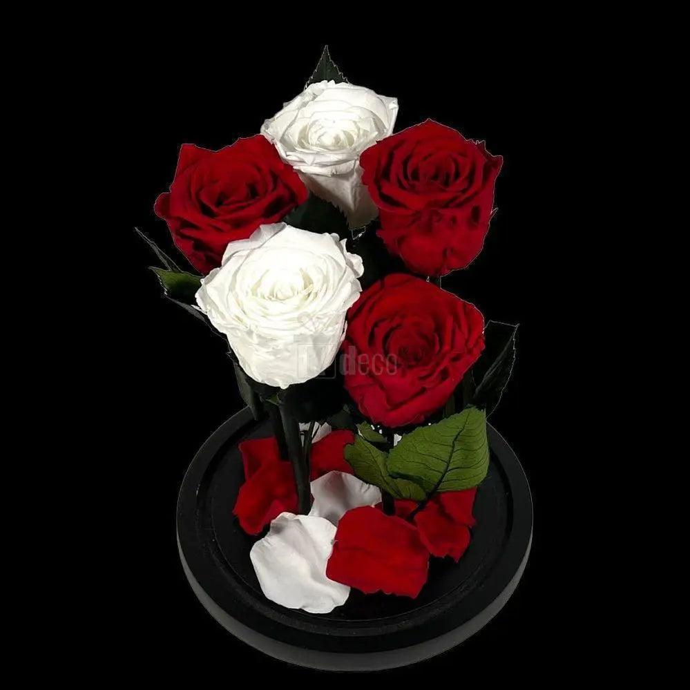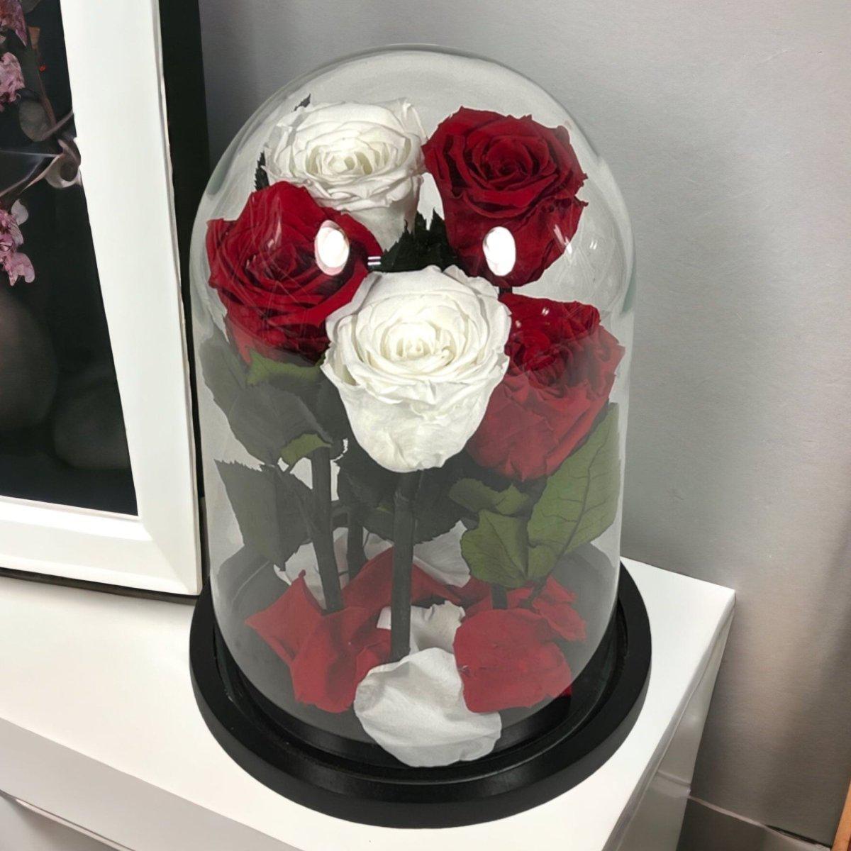 Trandafiri Criogenati In Cupola De Sticla 2 Albi Si 3 Rosii Cadou Elegant